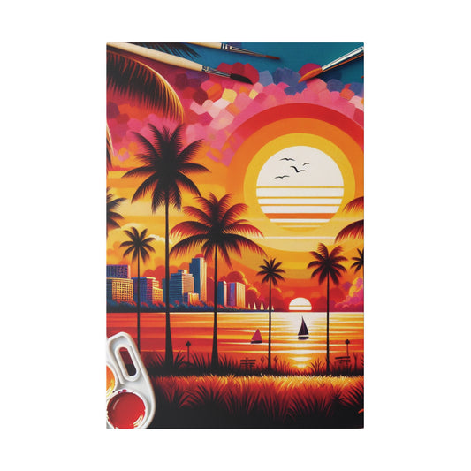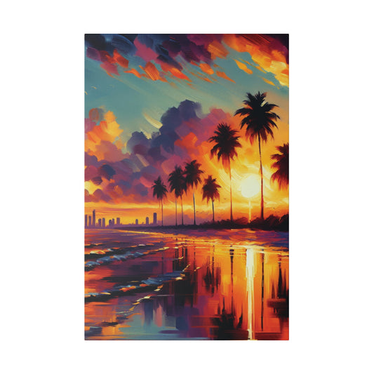 5634M - miami beach art, sunset background, ocean art work, beach art work, sunset designs, miami beach painting, miami beach print