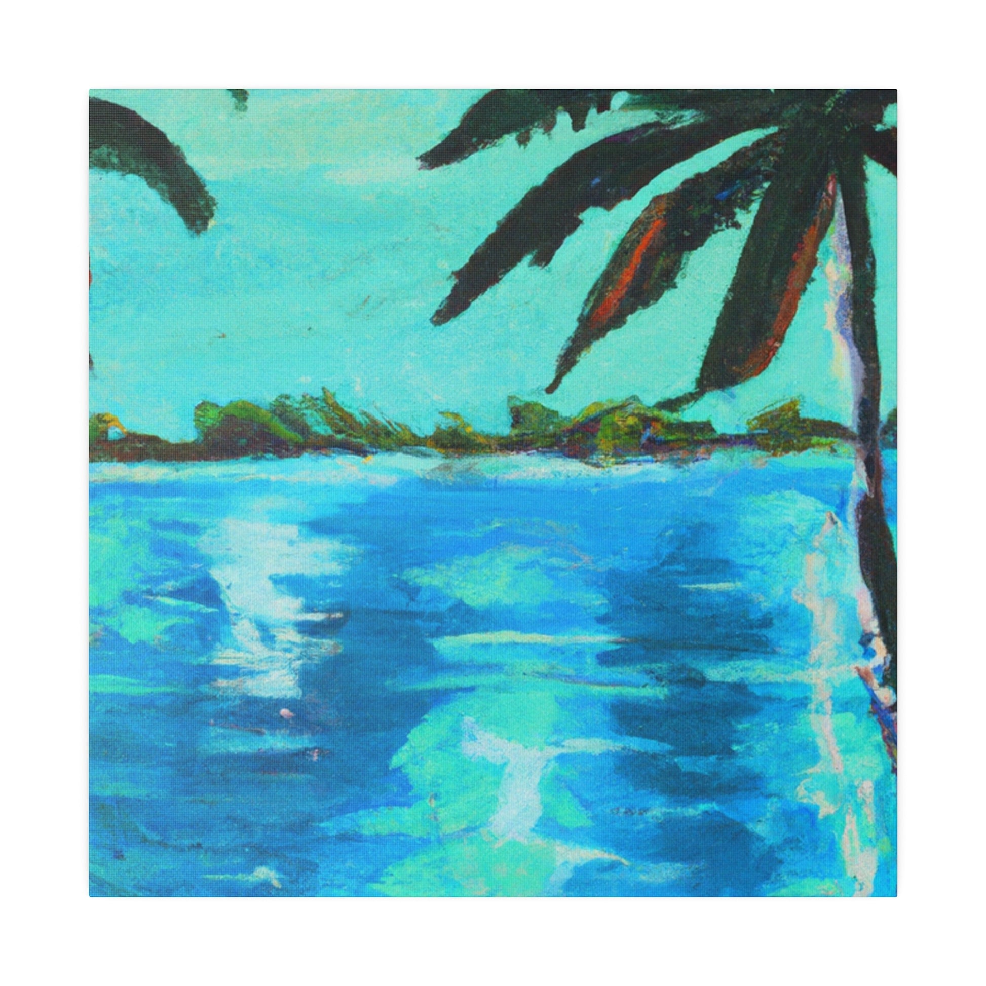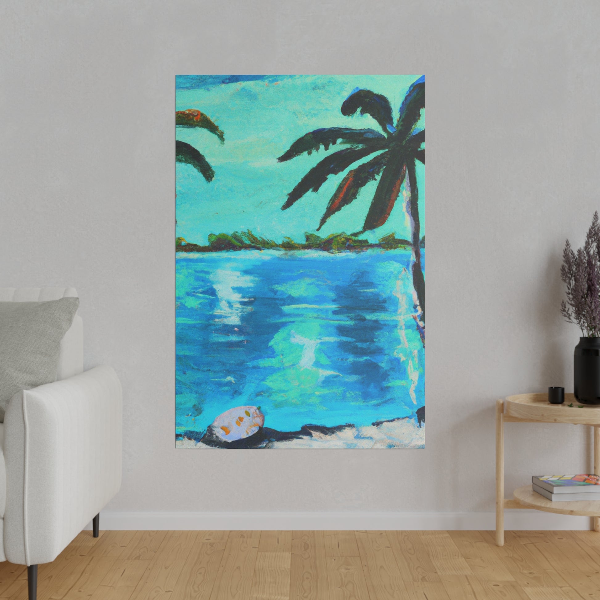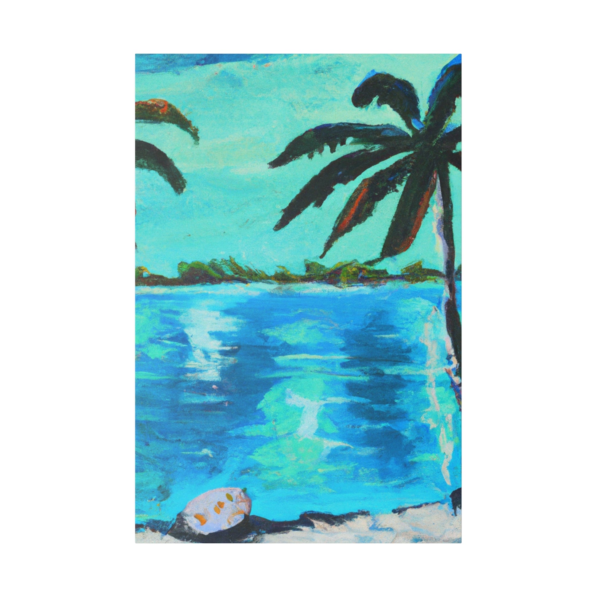 This magnificent landscape painting of blue Bahamas water, swaying palm trees and coconuts, is illuminated with bright colors and will give your home an instant invigorating atmosphere. Hang this canvas to make any wall come alive and to create your own paradise. #Coconuts #TropicalVibes #Palms #Art #Landscape #HomeDecor #BlueBahamas #Painting #Canvas #BrightColors #Paradise