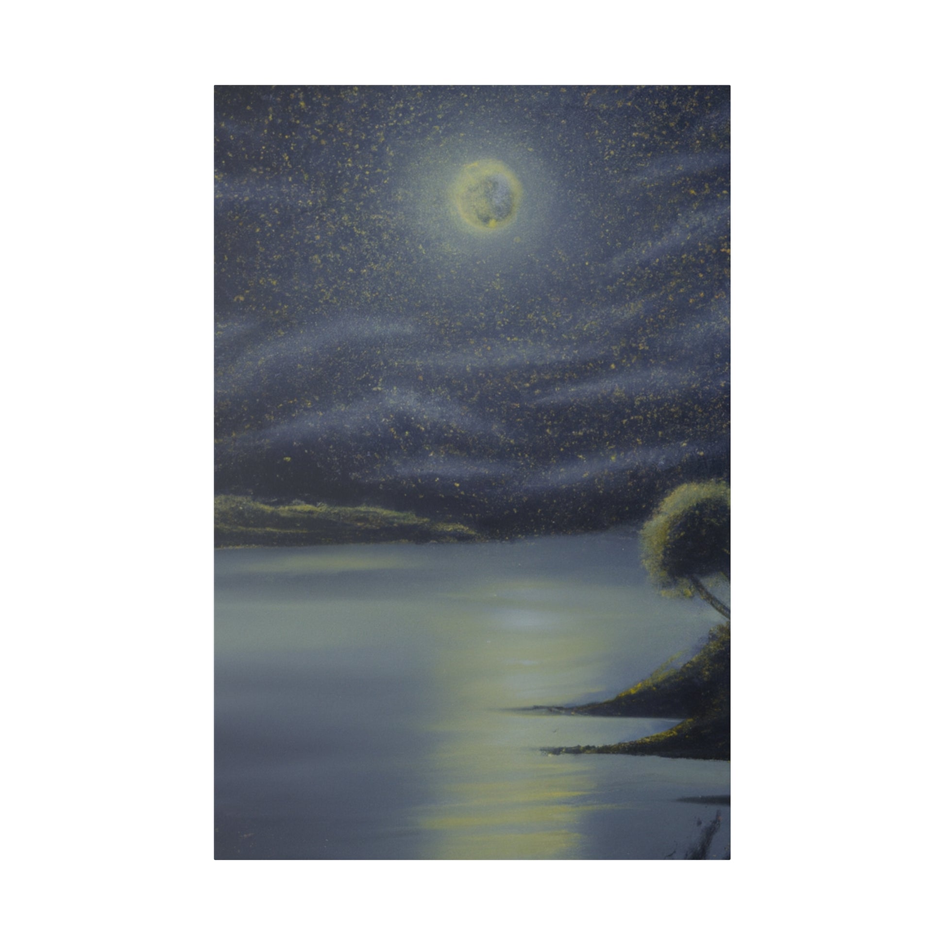 This magical oil painting captures the enchanting glow of a full moon illuminating an idyllic lake scene. Softly lit meadows and rocky shorelines, Pines silhouetted against its shimmering reflection—all combine to imbue this canvas with a soothing tranquility. Let this dreamy landscape transport you to your own personal paradise. #mysticallake #mysticalreflection #fantasylandscape #moonlitnight #tranquilitycaptured #moonlitmeadow #laverylit #moonmagic #reflectiononwater #enchantedcanvas #soothinglandscapes