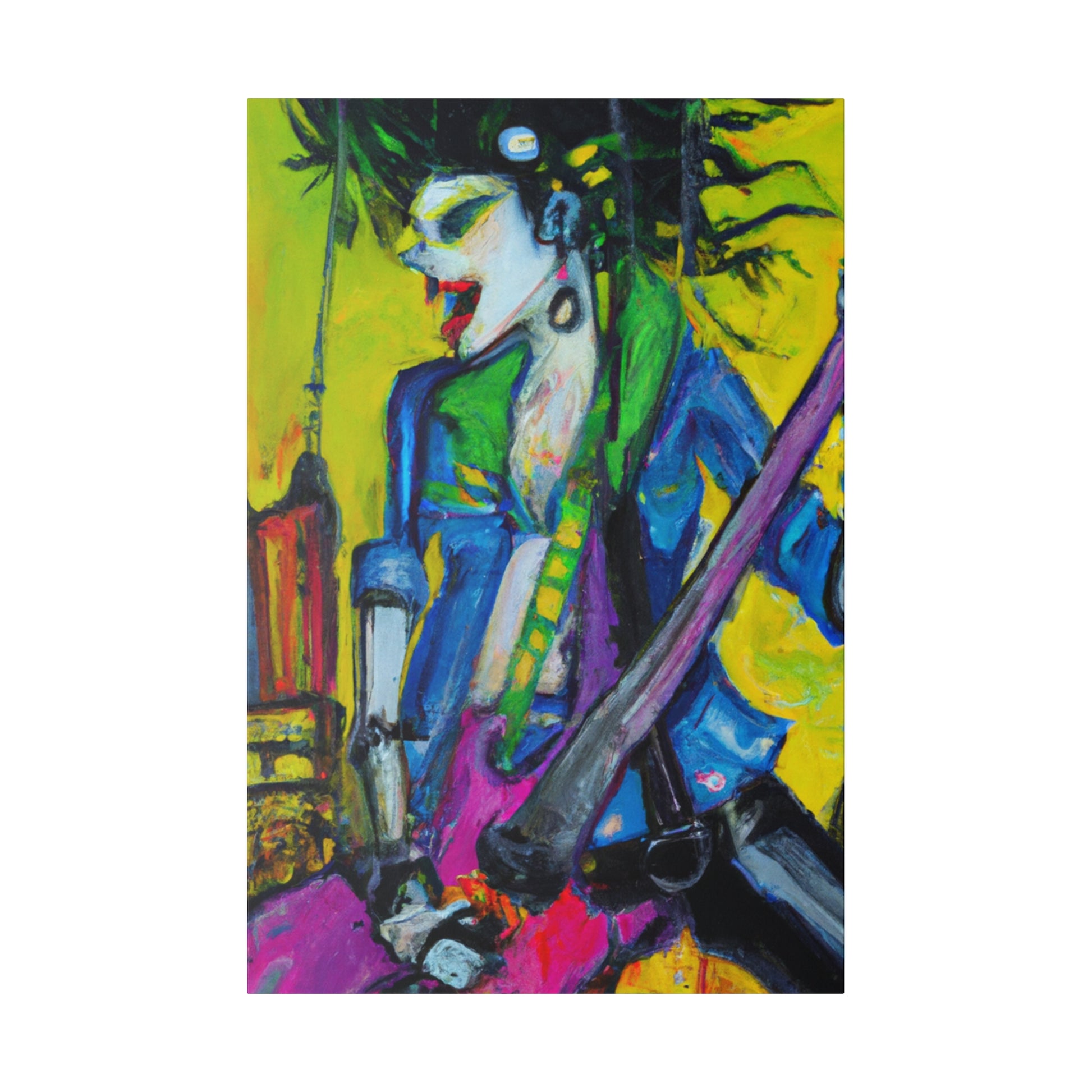 This oil painting of a rebellious punk rocker strumming an electric guitar brings an exciting juxtaposition of music and chaos. Adorned in vibrant eccentric clothing, her passionate performance is illuminated by the riot of colors and emotions that the music incites. Let her energize your art space, and add an edge to your walls. #punkrock #oilpainting #electricguitar #cityscape #colorfulart #vibrantemotions #juxtaposition #rockergirl #artspace #rebelliousstyle #eccentricclothing