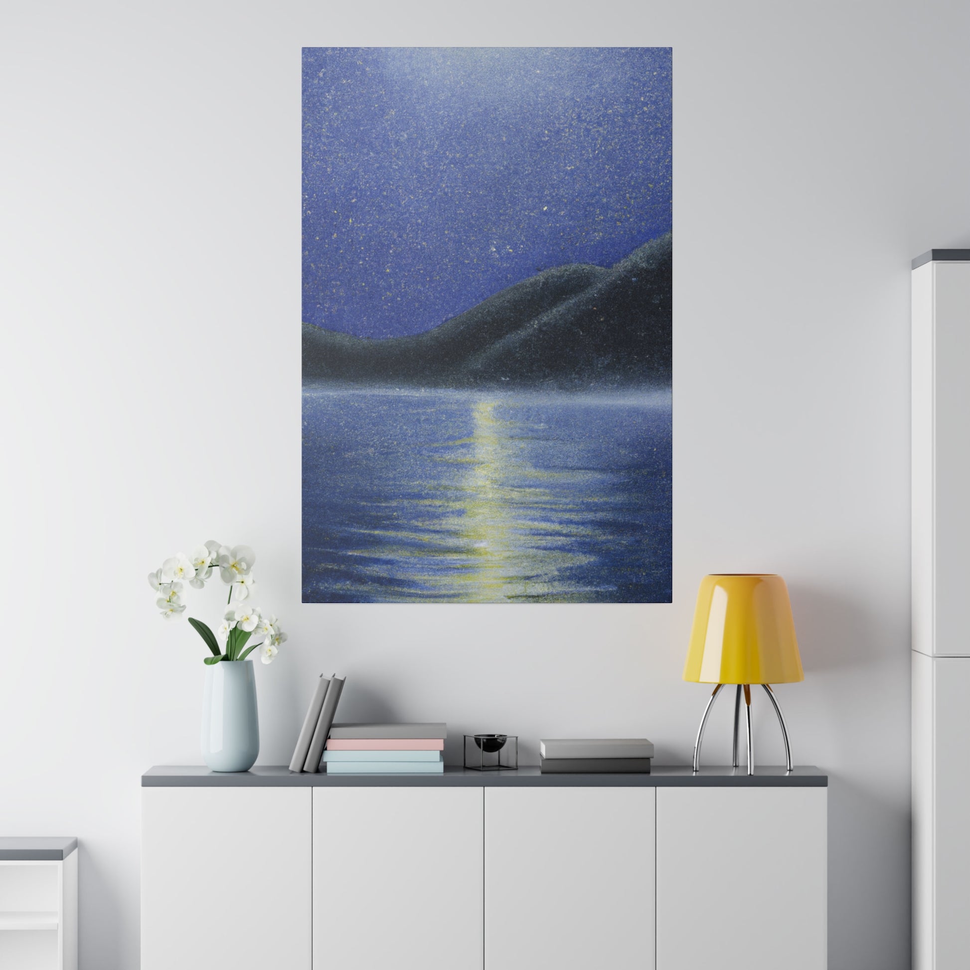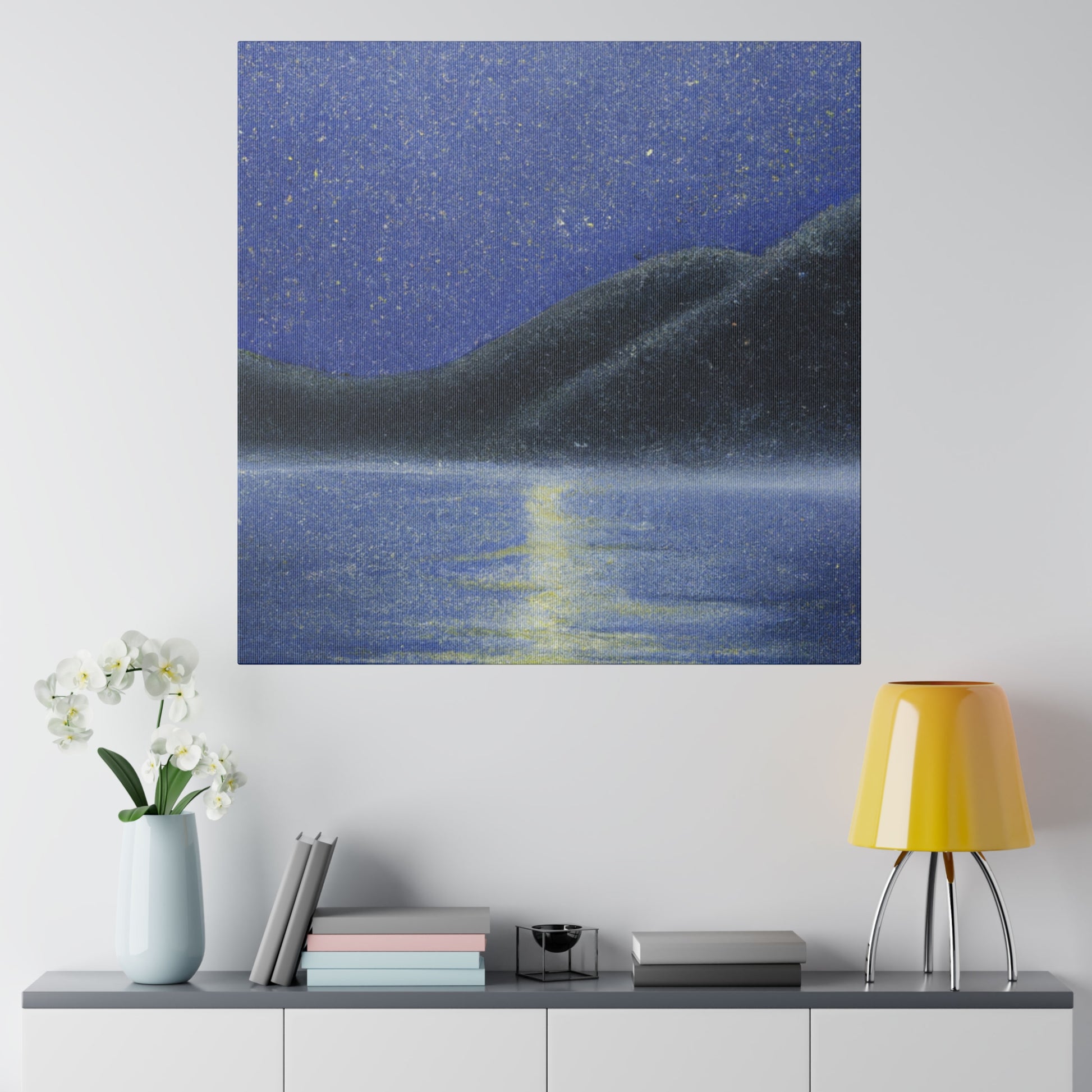 Experience the grandeur of a mystical lake scene with this stunning oil painting on canvas. From the shine of the glowing moonlight casting its light upon the tranquil water's surface to the natural beauty of its banks, this piece captures the tranquil beauty of a moonlit evening. With attention to detail and a subtle yet powerful palette, this art will bring a calming energy to any space. #oilpainting #canvasart #moonlight #lake #reflection #moon #water #mystical #grandeur #tranquil #evening #beauty