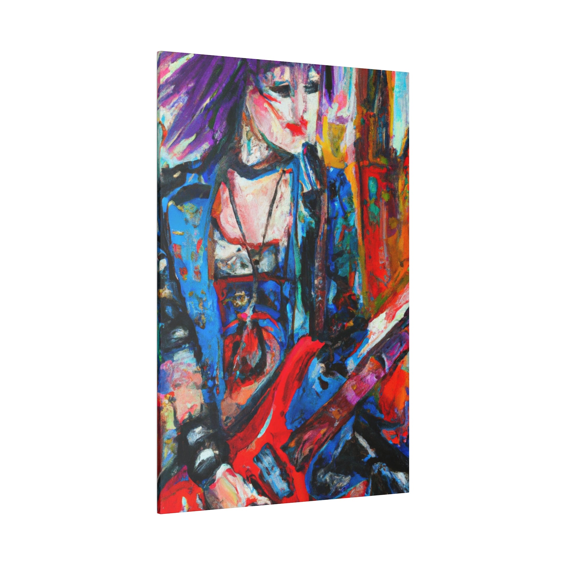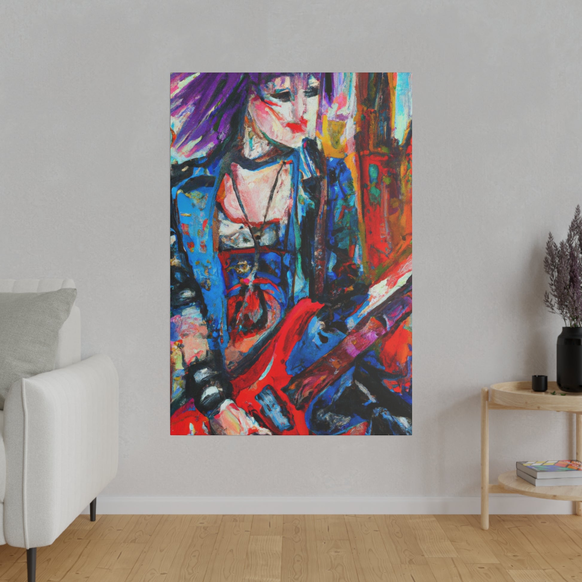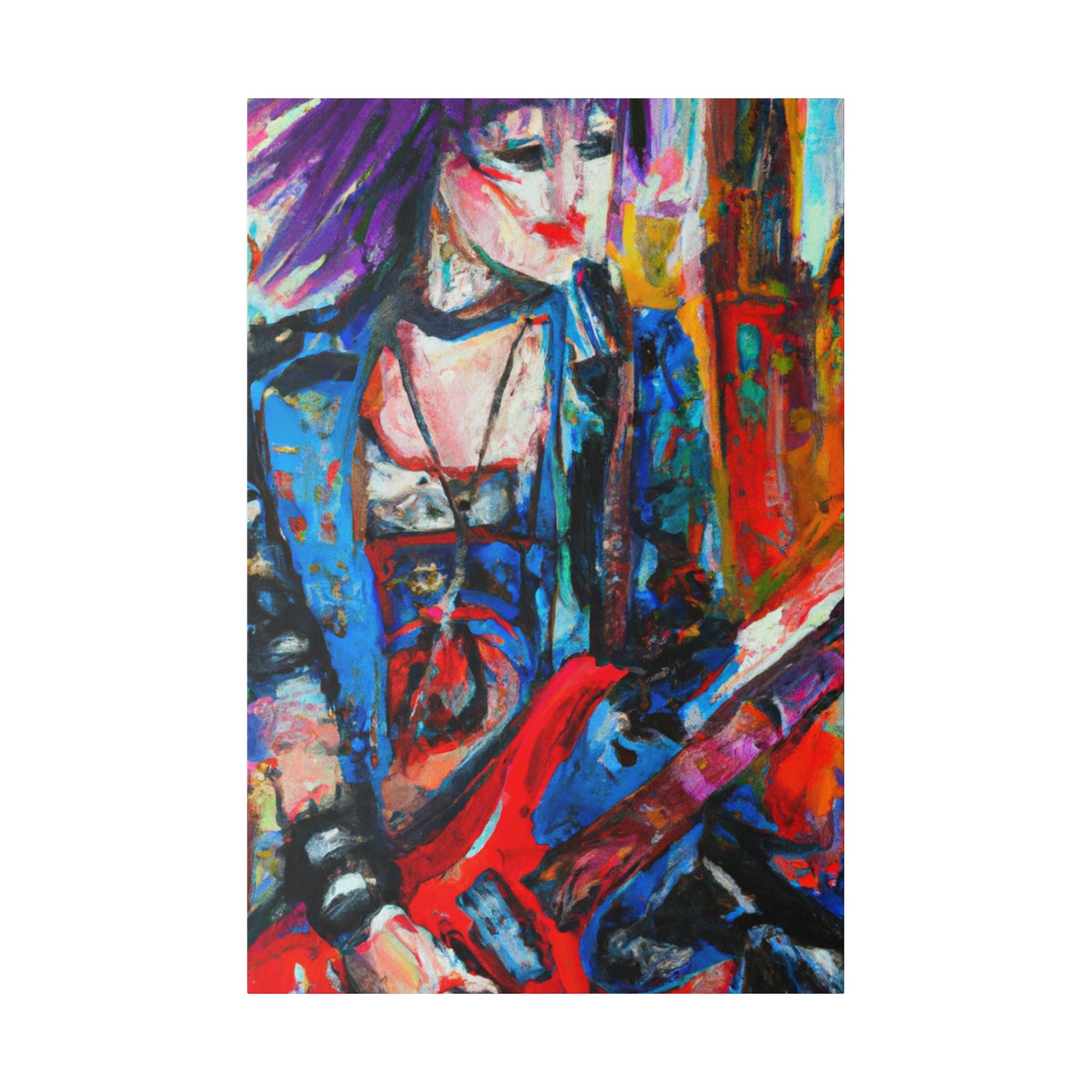 This thrilling painting of a punk-inspired rocker creating an exhilarating uproar of colors and emotion depicts a powerful message of independence and rebellion. The vivid and eccentric colors of the girl's clothing make her stand out amongst the chaotic cityscape, as she strums her electric guitar. Let this stunning canvas bring energy to your living space and feel the power every time you look at it! #RockAndRoll #ElectricGuitar #Rebellion #Independence #Cityscape #VividColors #Painting #WallArt #EccentricFashion #PunkStyle #RiotOfColors